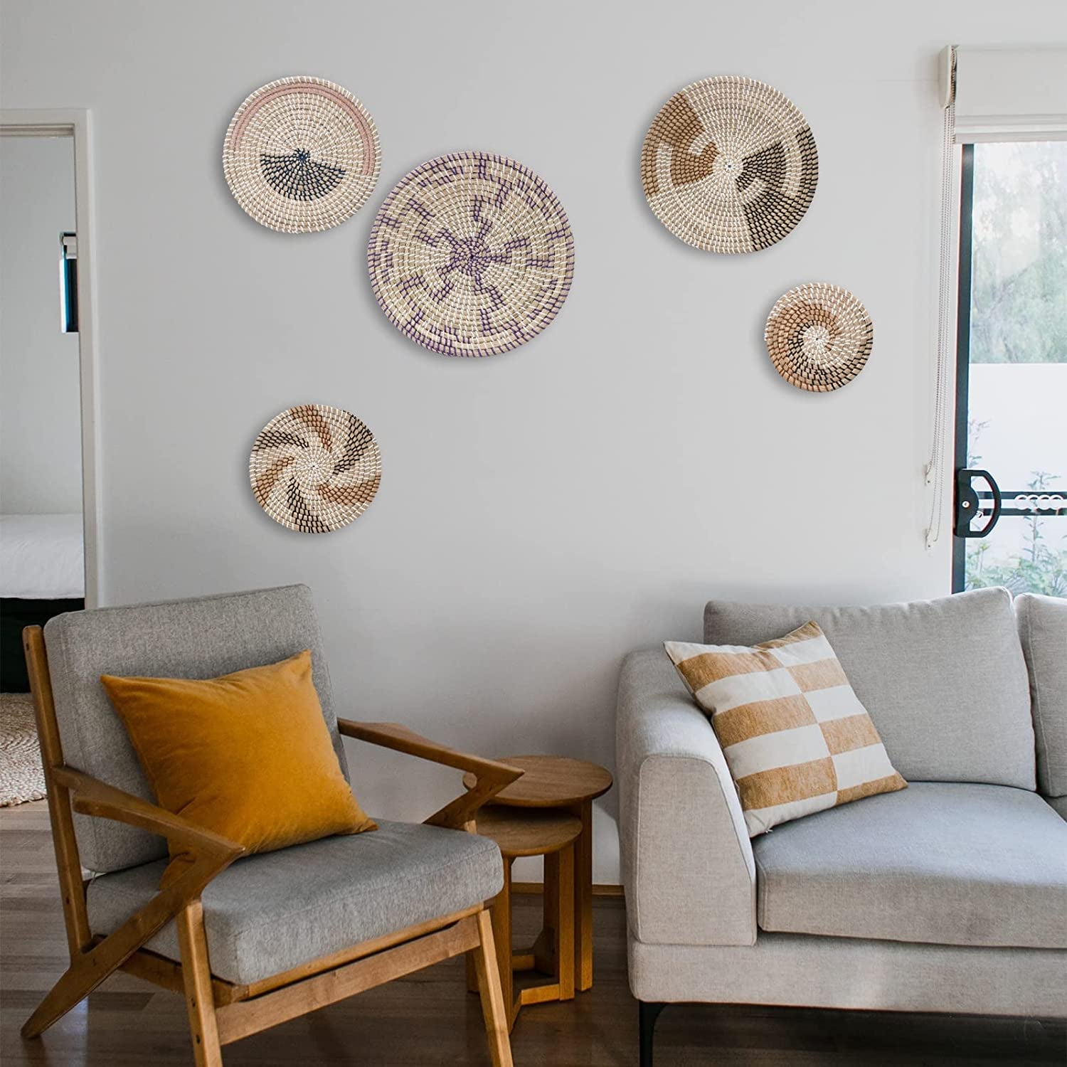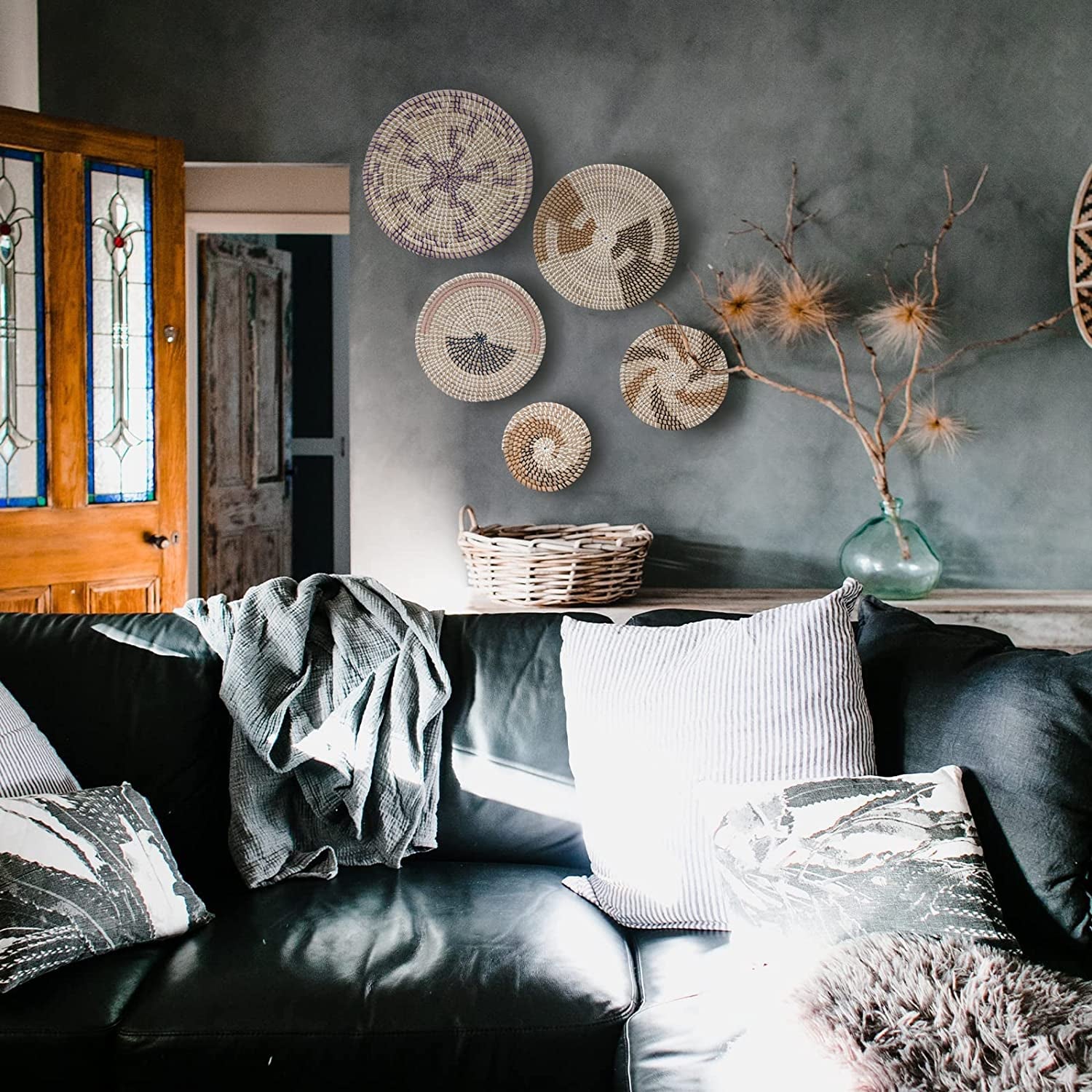 Wall Basket Decor, Set of 5 Woven Basket Wall Decor, Handmade Hanging Wall Basket for Living Room or Bedroom, Unique Boho Wall Art.